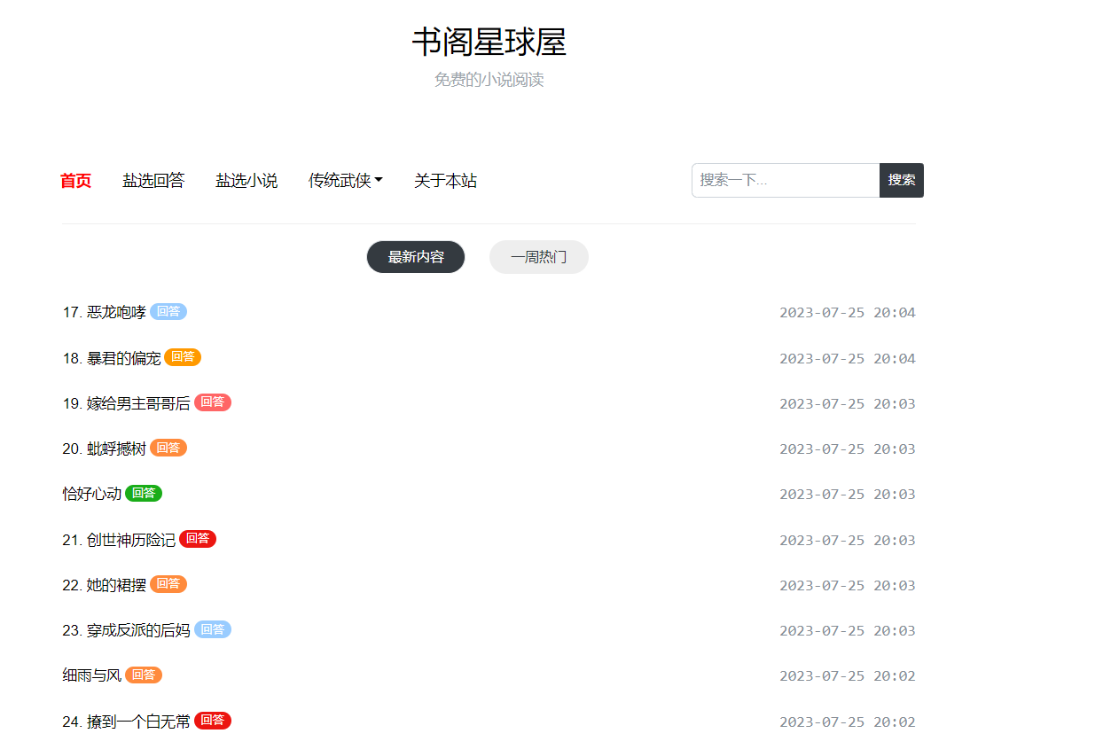 又一个盐选免费阅读服务,界面干净美观,阅读体验还不错,主要收录了盐选回答和小说,无需登陆,点开即看。