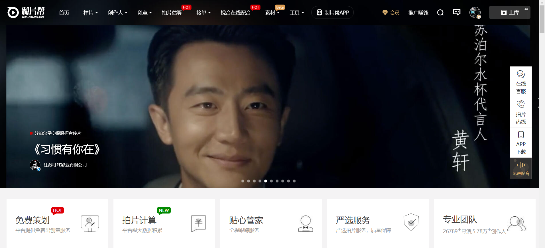 制片帮 宣传片TVC广告片视频制作服务平台-拍片就上制片帮!制片帮,企业宣传片拍摄,宣传片制作,广告片制作,tvc广告片,MG动画制作,三维动画制作,视频制作平台,视频制作,微电影制作制片帮AI视频制作服务平台。拍宣传片就上制片帮。企业宣传片制作、TVC广告片制作、微电影制作、MG动画视频制作首选制片帮服务平台。提供企业宣传片视频拍摄制作,广告片,微电影,摄影直播,版权素材交易,视频制作,影视设备共享租赁等一站式服务。