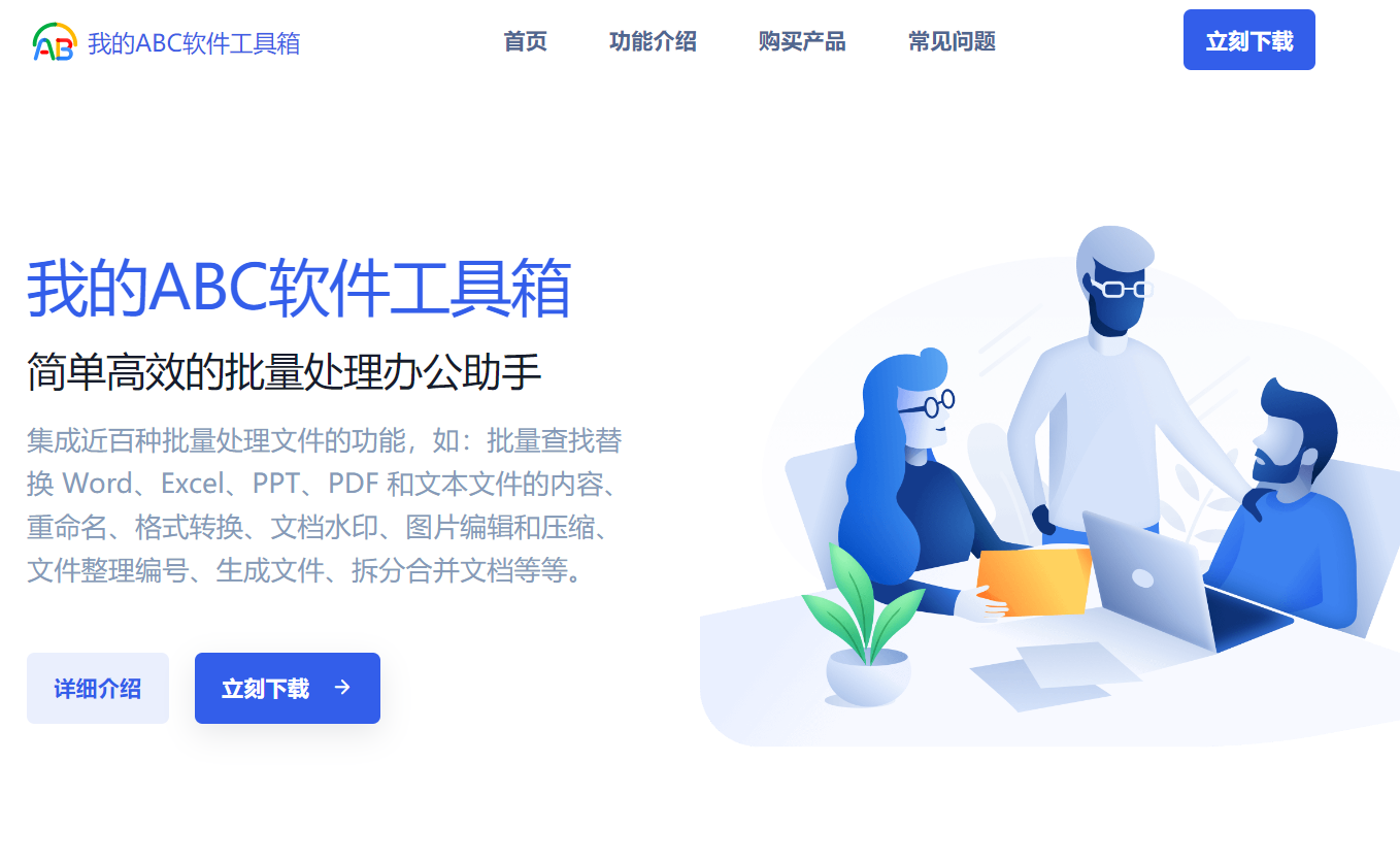 集成近百种批量处理文件的功能,如:批量查找替换 Word、Excel、PPT、PDF 和文本文件的内容、重命名、格式转换、文档水印、图片编辑和压缩、文件整理编号、生成文件、拆分合并文档等等。此软件是传统的本地桌面应用,所有操作均在本地电脑上执行。