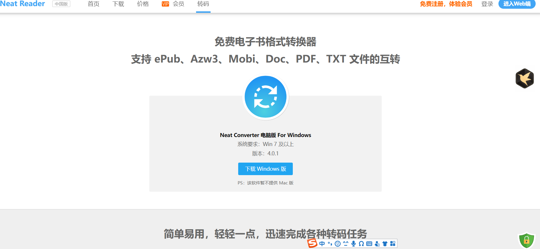 EPUB阅读器 | TXT阅读器 | Neat Reader | 超赞的全平台电子书阅读器,全球百万用户共同的选择NeatReader,小说阅读器,电子书阅读器,epub,epub阅读器,txt,txt阅读器,电脑epub阅读器,电脑txt阅读器,epub怎么打开,epub阅读器PCNeat Reader 是一款支持跨平台使用的 EPUB/TXT 电子书阅读器,无论你使用iOS、Android、还是Windows和Mac,Neat Reader 都能帮您打开 EPUB 电子书和 TXT 小说,为您提供良好的阅读体验。Neat Reader 甚至支持直接在浏览器中阅读EPUB和TXT文件,让您无需安装任何软件。只需完成注册,即可获得7天免费会员,体验高级功能。