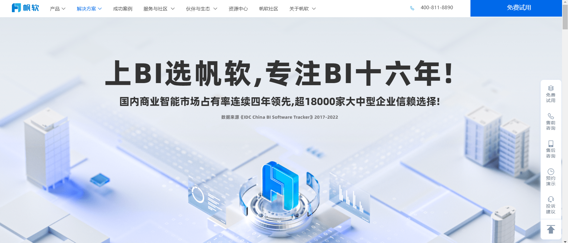 帆软 - 上BI选帆软,专注BI十六年大数据分析,数据分析平台,大数据公司,数据中心,大数据解决方案,数据分析软件,数据可视化工具,商业智能,BI工具,大数据BI,BI解决方案,帆软,帆软帆软专注BI(商业智能)领域16年,IDC认证国内BI市场占有率第一,超18000家大中型企业选择,为70000个信息化项目提供BI支持。