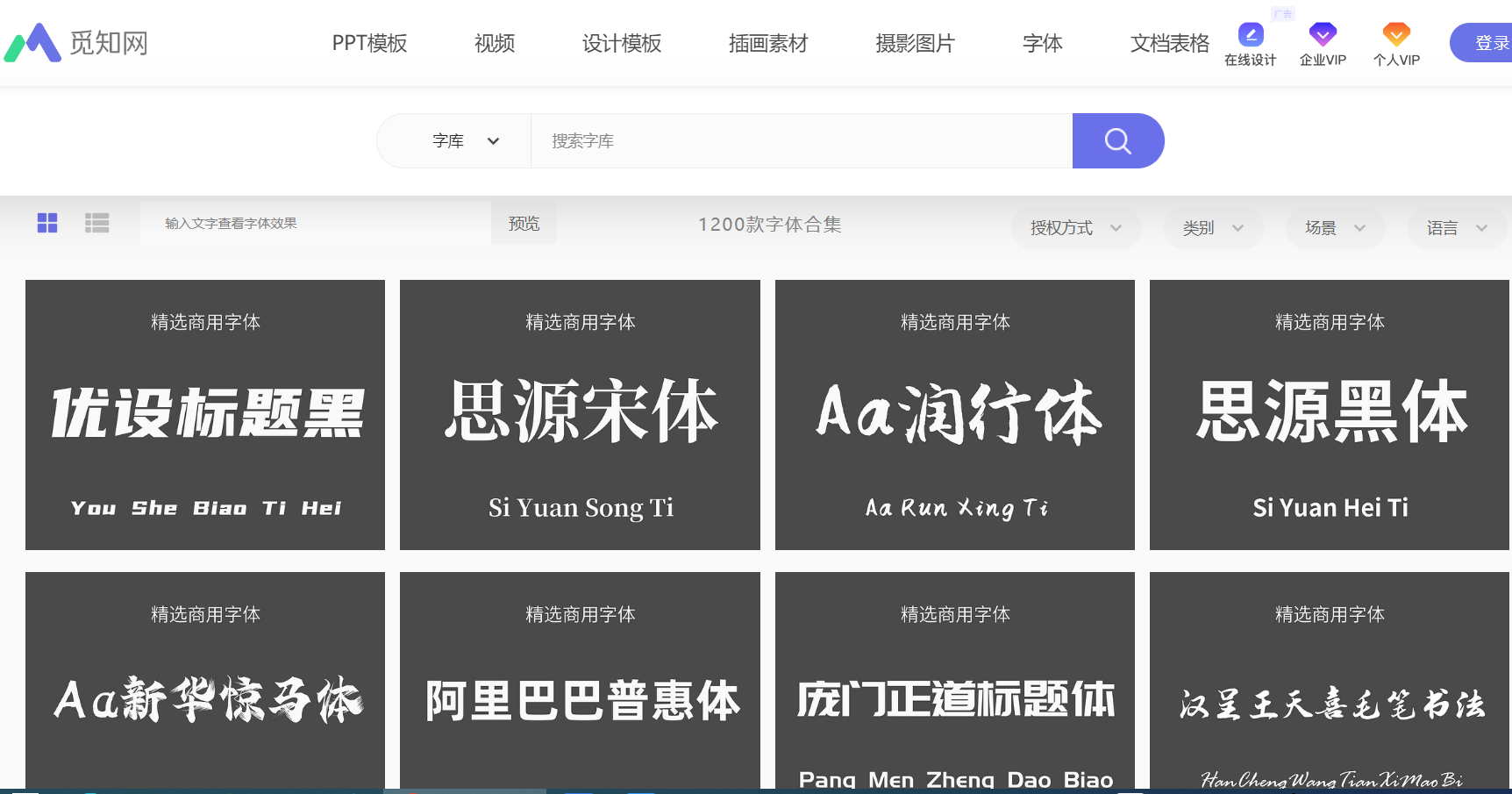 一个免费的商用字体下载网站,里面收录了大量的免费商用字体。分类也很清晰...