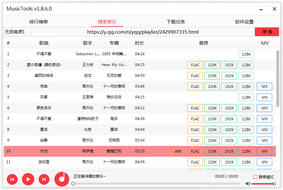 软件永久免费使用,低调使用无需宣传MusicTools,免费小巧的付费歌曲无损音乐下载工具,挖掘大型音乐平台网站排行榜单,聚合各大音乐平台网站搜索接口,音乐源可以选择搜索接口。免费在线试听及下载全网付费歌曲、版权音乐、无损音质歌曲,支持同时下载歌词、写入Tag标签信息等功能。本软件为免费软件,永久免费使用!!!如果你是购买的说明你被骗了,建议直接去投诉举报商家并要求退款!请低调使用,切勿宣传,感谢支持!