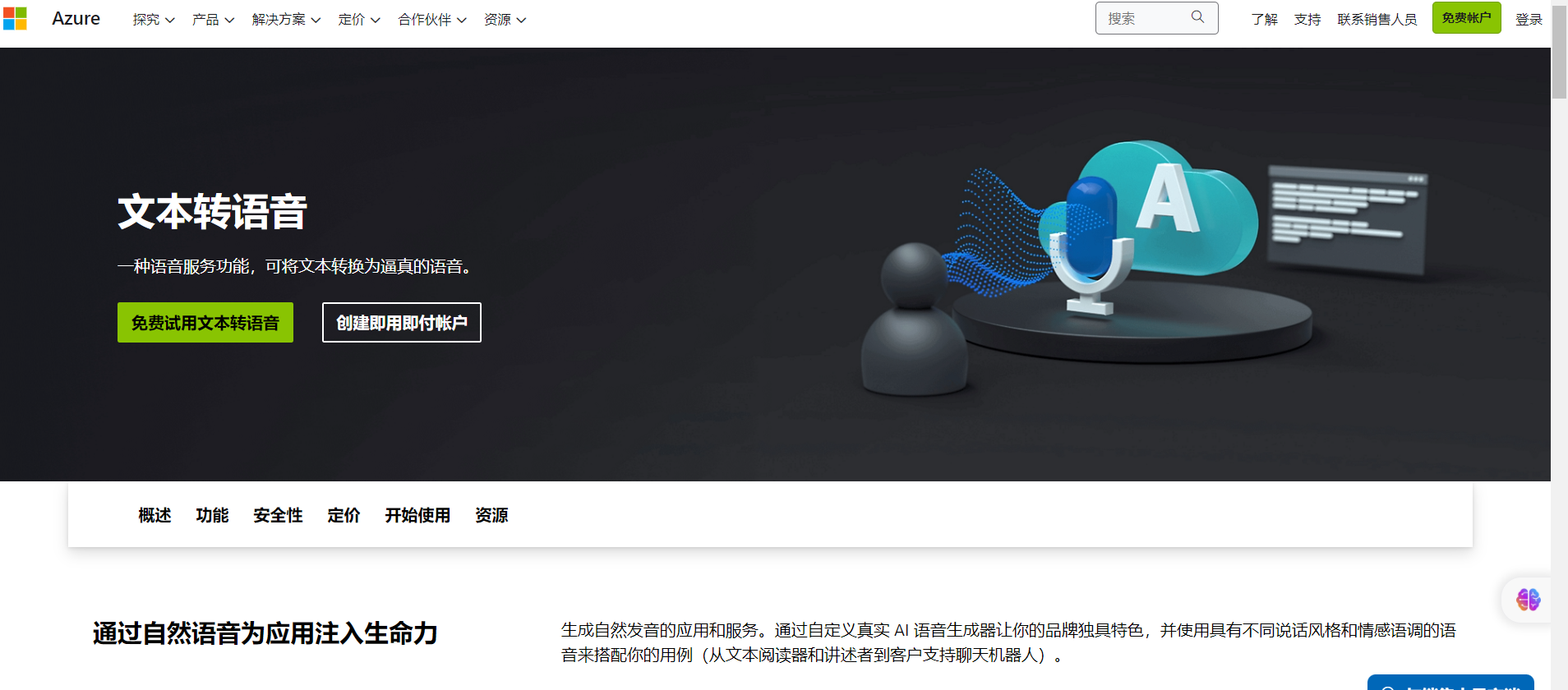 仅为所使用资源付费(无前期成本)。使用文本转语音时,可以根据转换为音频的字符数即用即付。
