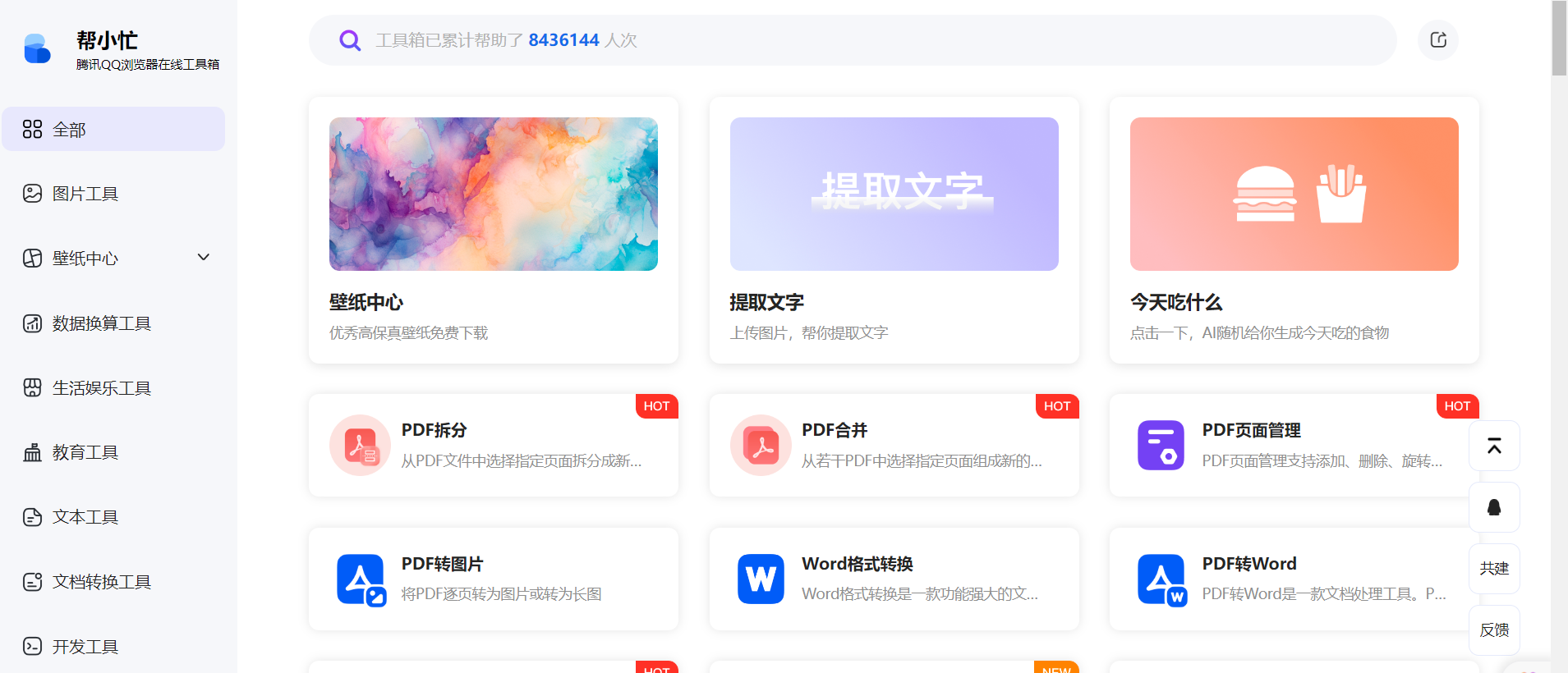 帮小忙,腾讯QQ浏览器在线工具箱平台 工具平台,帮小忙 全部 图片 数据换算...