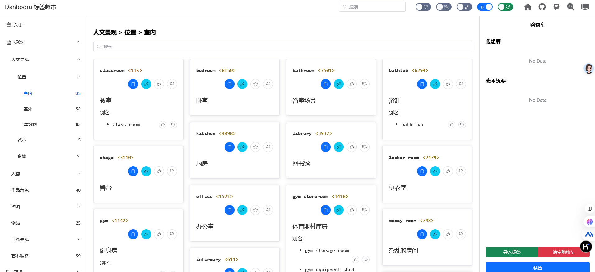 AI标签超市SD提示词超市,这是一个用于构建 Danbooru 标签组合的网站。