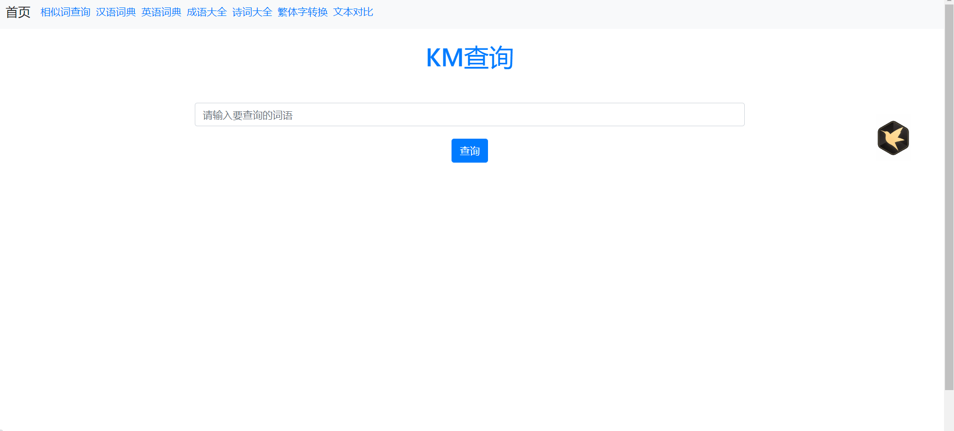 KM查询KM查询,kmchaKM查询,集成了最全的汉语词典和英语词典,实时更新互联网上的热门词汇,为用户提供中英文同义词查询服务。