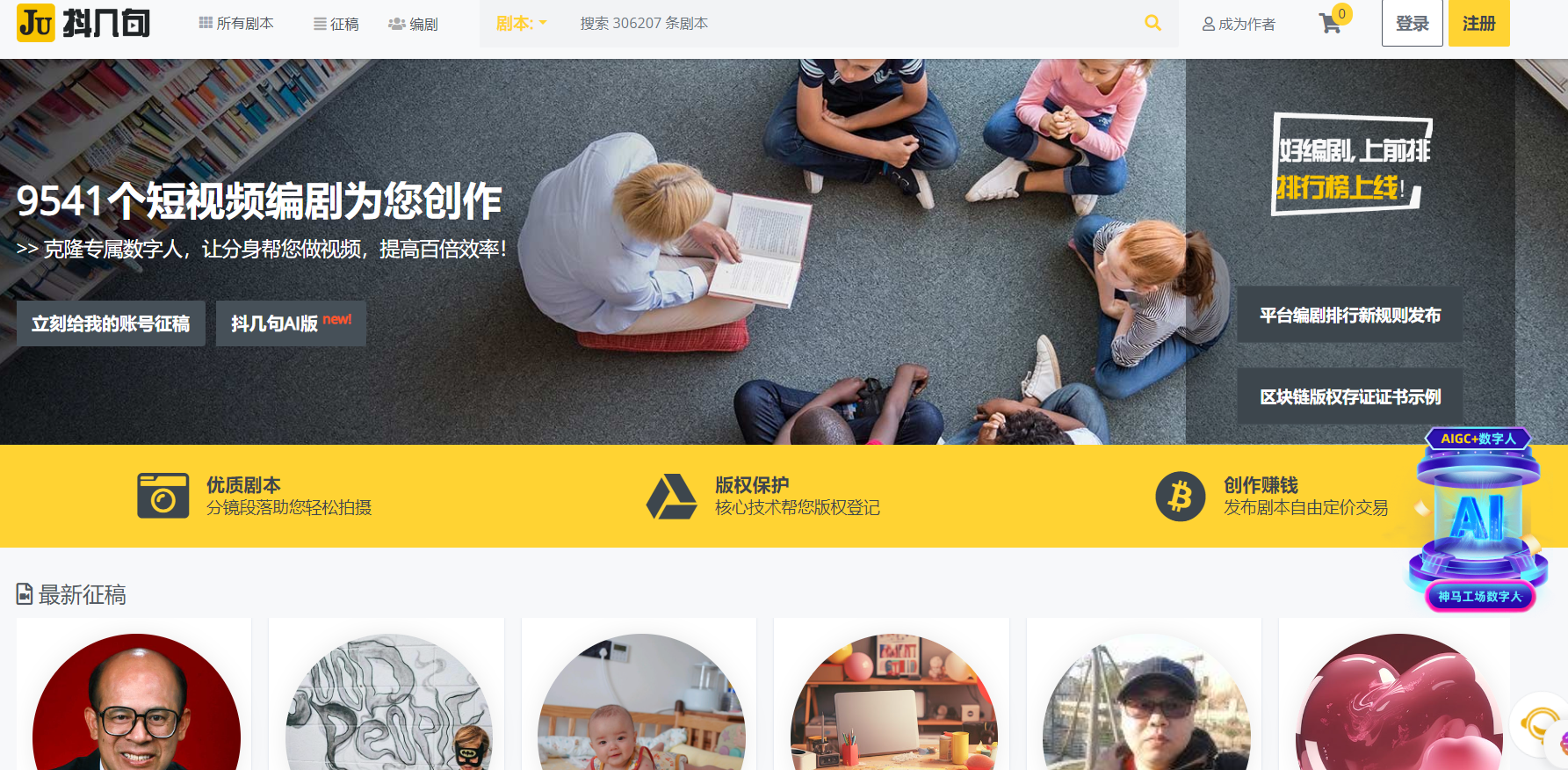 抖几句定位服务于短视频领域的上下游用户,包括但不限于:剧作者、短视频爱好者、网红IP、MCN机构、短视频营销的企业等。剧作者在这里能享受涵括剧本创作、版权保护、剧本交易在内的一站式服务。企业或拍摄方在这里能找到满足自身需求的优质的短视频剧本,为企业品牌营销、IP打造或项目推广找到优质的内容支撑及营销思路。