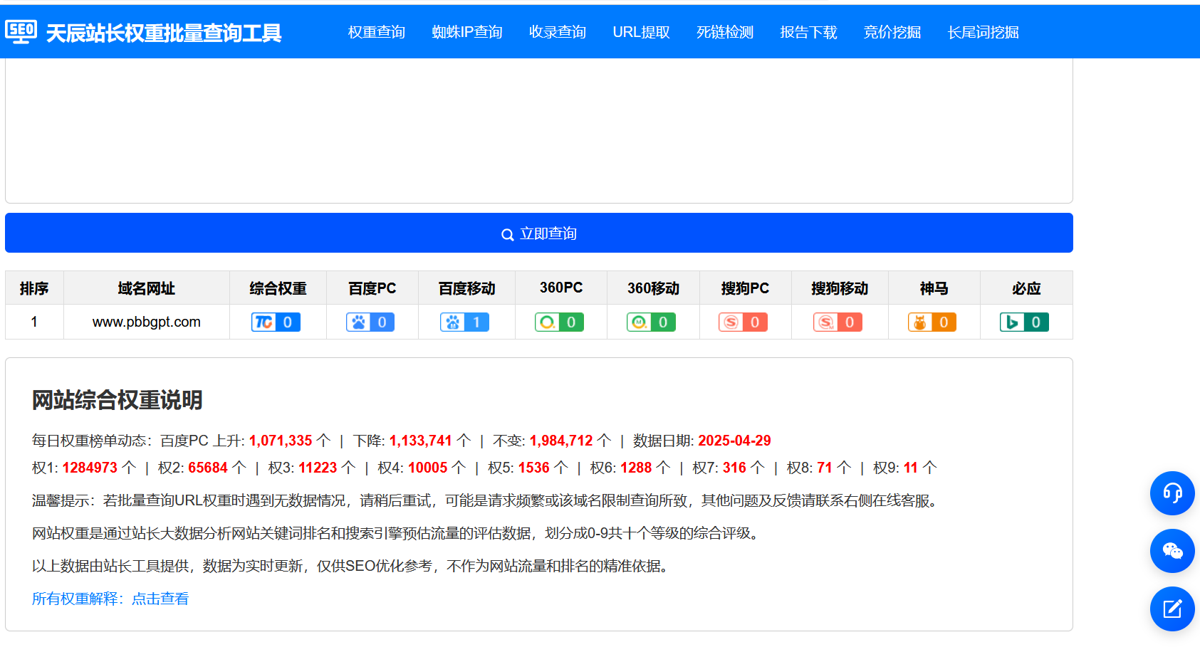 1 www.pbbgpt.com 综合权重0 百度PC0 百度移动1 360PC0 360移动0 搜狗PC0 搜狗移动0 神马0 必应0