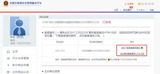 完成审核备案后,公安机关会发放备案号,单位或个人需要将备案号悬挂放置在网站首页最下端。