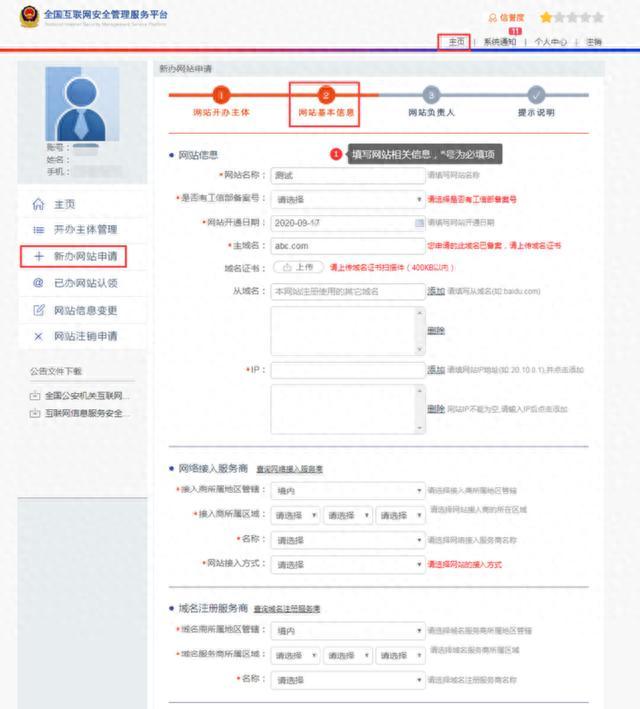 备案的主要流程是:注册账号、开办主体申请、网站基本信息填写、负责人信息填写、确认提示说明。