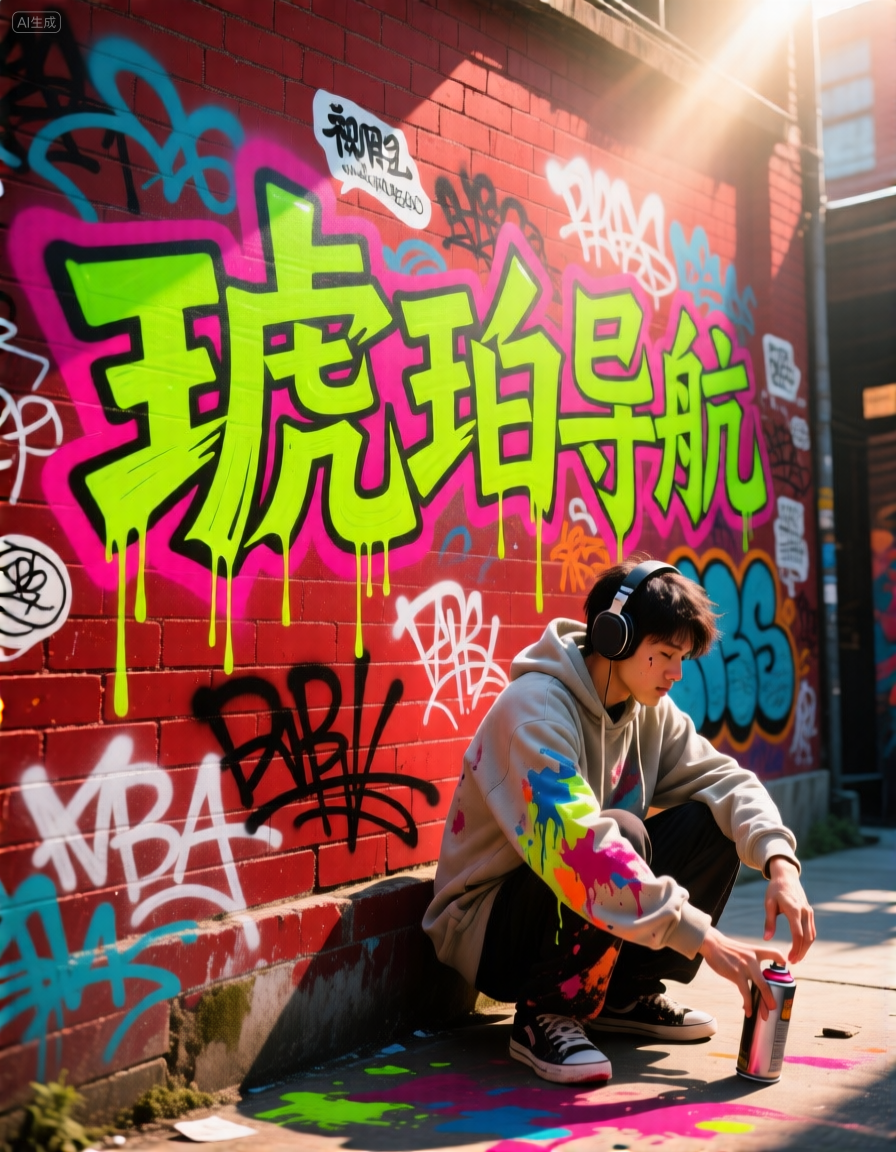 文字样式和排版:主标题 “中文海报 qwen-image” 采用白色粗体字,“中文海报” 字体较大且边缘有黑色泼墨效果,“qwen-image” 为黄色斜体字,位于主标题右侧。底部黄色警示带文字为黑色手写体,随意倾斜,增强反讽感。左下角 “ I AM DESIGNER” 哭脸徽章文字为白色环绕,黑色涂鸦线条穿插画面,文字分布无规律,与拼贴图像的混乱感呼应,强化 “中文海报” 的主题,排版打破常规网格,凸显创意气质。
